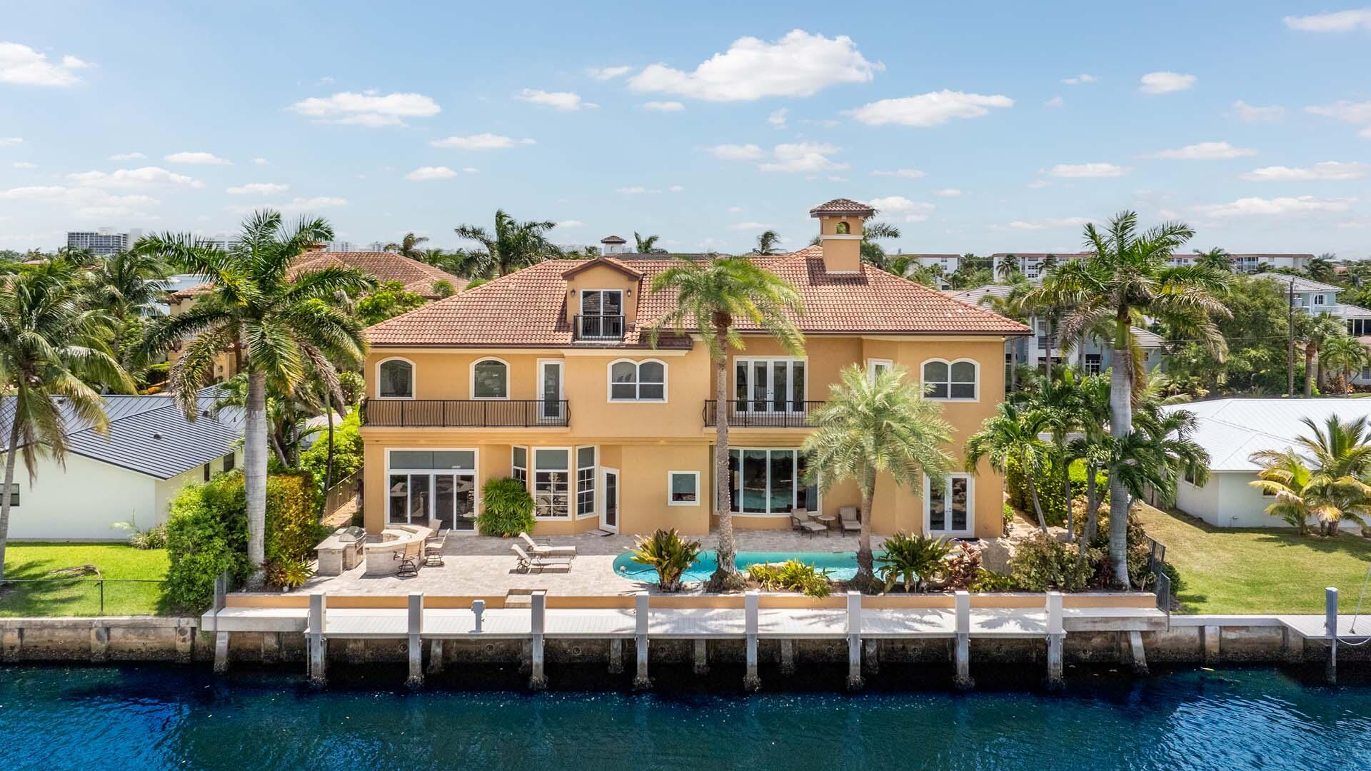 Welcome to 929 Banyan Drive, a home that blends timeless craftsmanship with the ease of waterfront living. Set on 90 feet of deepwater frontage in the desirable Delray Beach enclave of Tropic Isle, this substantial residence offers five bedrooms plus a private office, three car garage, and a dedicated home theater. The well appointed kitchen, designed for both function and style, opens seamlessly to a spacious family room, creating the heart of the home. Expansive windows and outdoor living areas frame tranquil water views, while solid construction and thoughtful design ensure comfort, privacy, and lasting quality. Perfect for boating, entertaining, or simply relaxing by the water, this home offers a refined yet welcoming lifestyle in an exceptional location.