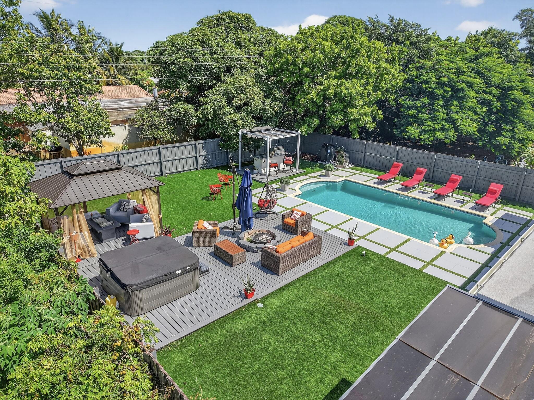 Completely renovated from top to bottom! This stunning 3 bedroom, 2 bathroom home offers modern finishes throughout and is move in ready. Located in a desirable non HOA community, you'll enjoy freedom and flexibility with no restrictions. The home features a private, fully fenced backyard oasis with a heated pool, fire pit, hot tub, patio for grill space, bar area and artificial grass, creating a very low maintenance outdoor space perfect for entertaining or relaxing year round. Conveniently situated with easy access to the freeway and just minutes from the beach, this property combines style, comfort, and prime location. Walking/Biking/Golf Cart distance from all that downtown Boynton Beach has to offer! This property could be ideal for investors. Offered at $895,000 cash only Furniture Negotiable.