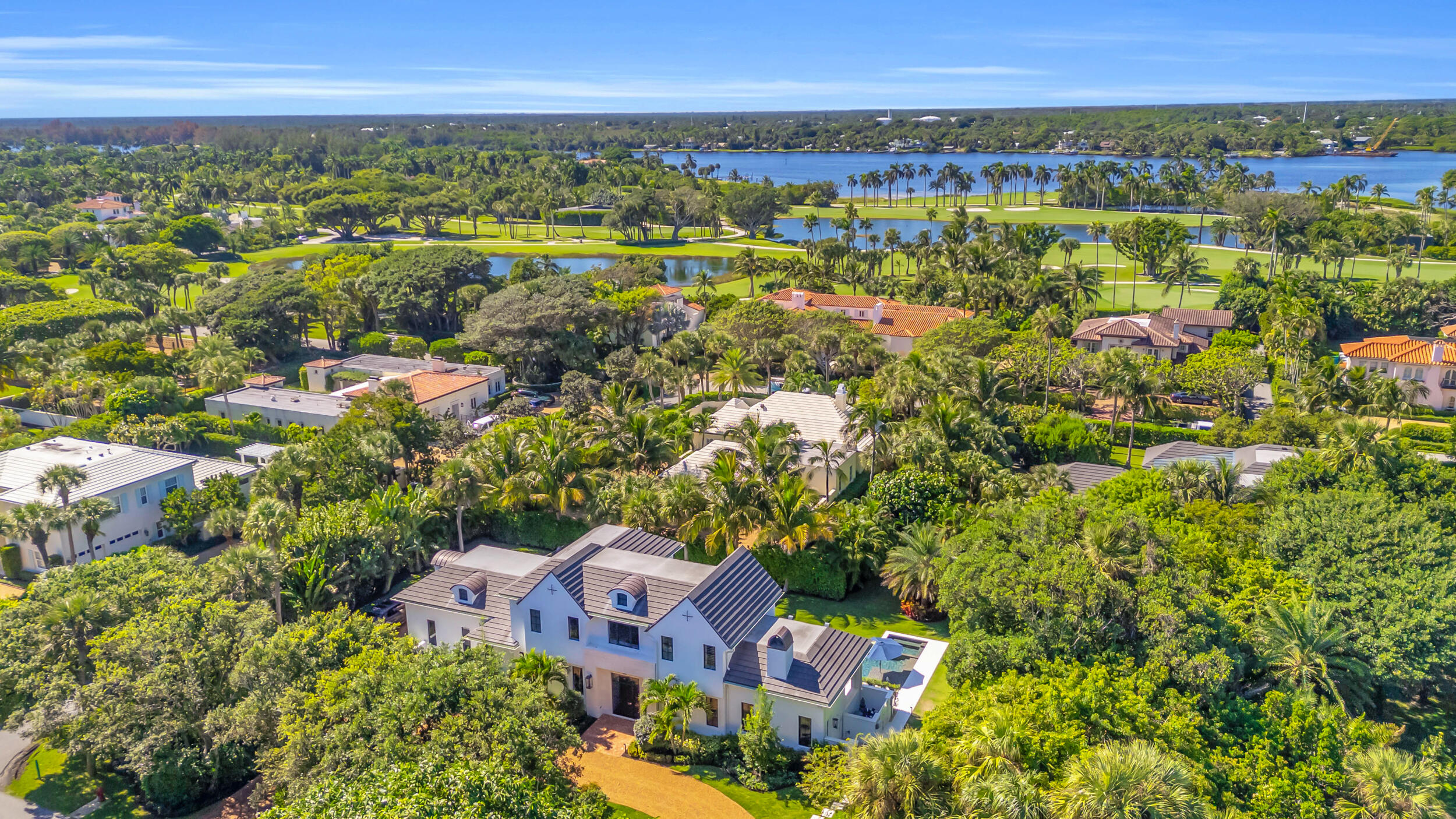 Located near the Jupiter Island Club and Golf Course, this 2023 British West Indies inspired residence combines timeless architecture with modern coastal luxury. The main level features a gourmet kitchen, spacious living room with gas fireplace, dining area, private office, and a guest bedroom with ensuite bath. Upstairs, the owner's suite offers two custom walk in closets, balcony access, dual vanities, a walk in glass shower, and a coffee bar. Two additional bedrooms share a luxurious connecting bath and open to an expansive balcony overlooking the pool. Perfect for entertaining, the outdoor spaces include a covered lanai with summer kitchen and gas fireplace, poolside dining patio outdoor shower, and a heated pool and spa with sun shelf. Highlights: impact rated windows and doors, whole home generator, propane gas system, landscape lighting, dual zone AC, and tankless water heater. Enjoy refined island living just steps from Jupiter Island's private club, golf course, and pristine beaches.