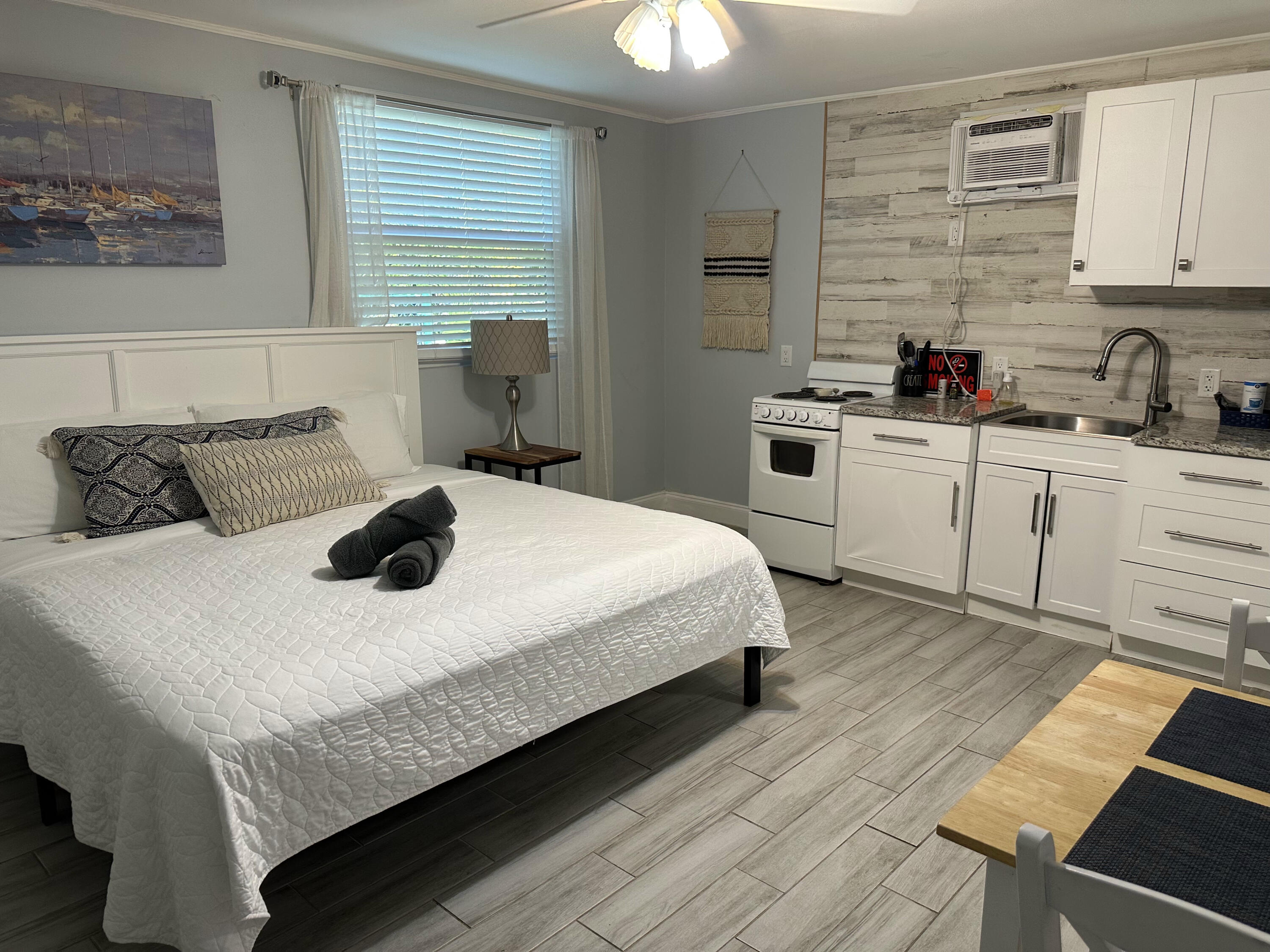 This beautifully renovated home offers 3/2bath, featuring a brand new full size kitchen with updated cabinets, a fully upgraded bathroom, and modern laminate flooring throughout. The home includes cen