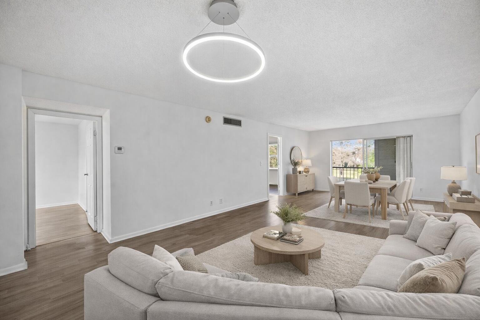 This condominium features thoughtful updates completed in 2022, including stainless steel kitchen appliances with a French door refrigerator, range and microwave, fresh interior paint, updated flooring and LED lighting throughout. The kitchen is designed for both style and function with custom cabinetry, a pantry and granite countertops. Both bedrooms offer spacious walk in closets, with an additional closet located in Bedroom 1. The unit also includes convenient on site storage. A screened and tiled patio overlooks the community pool, creating a comfortable outdoor space to relax and unwind. Association dues include internet, cable, trash, water and contributions to reserves. The community features a 24 hour guard gated entrance along with laundry facilities available on every level.