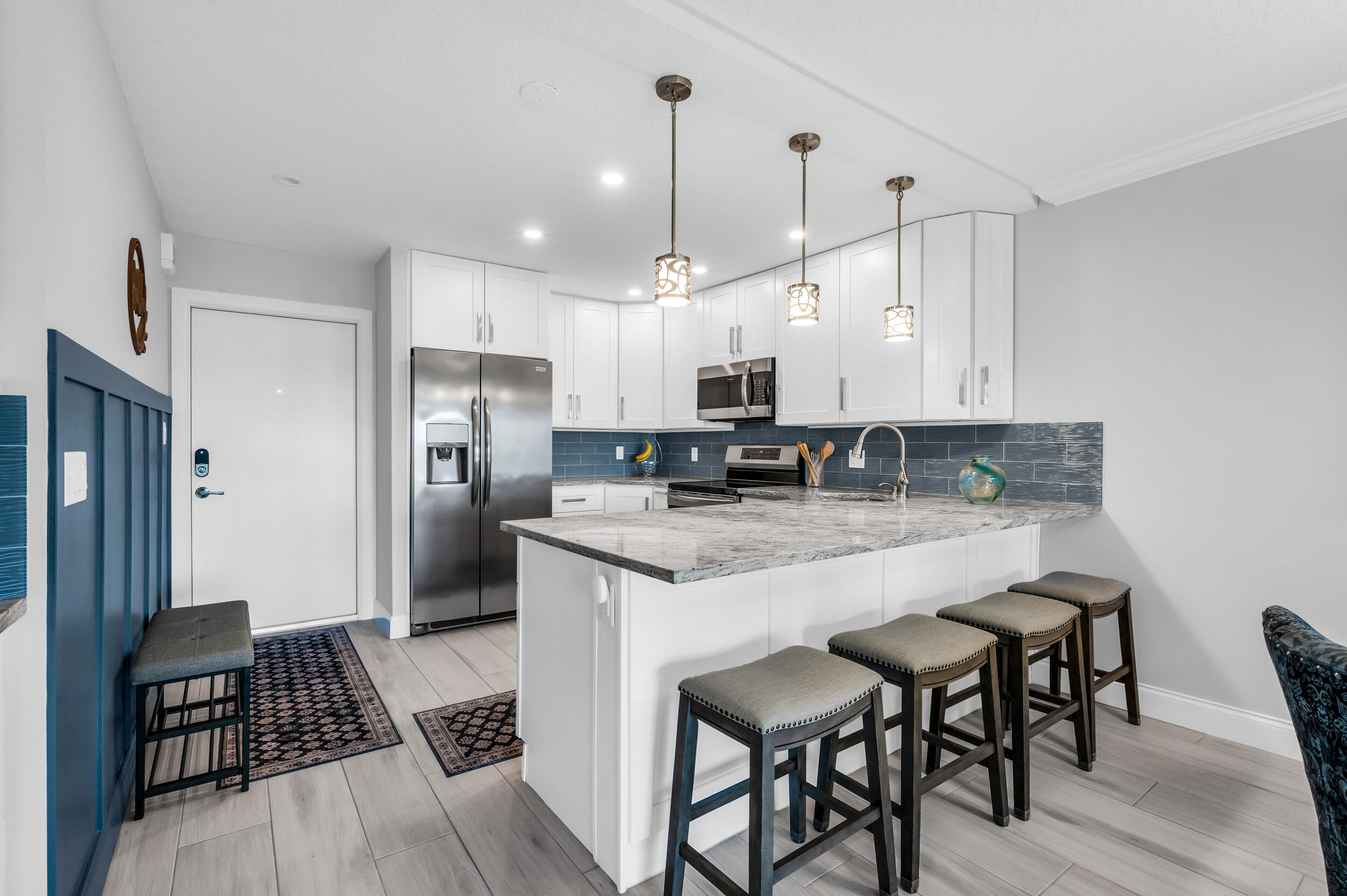 This turnkey furnished 2 bedroom, 2 bath condo features 1,233 sq. ft. of comfortable living with thoughtful updates throughout. Enjoy a coastal vibe in the living room with a custom coastal wall board