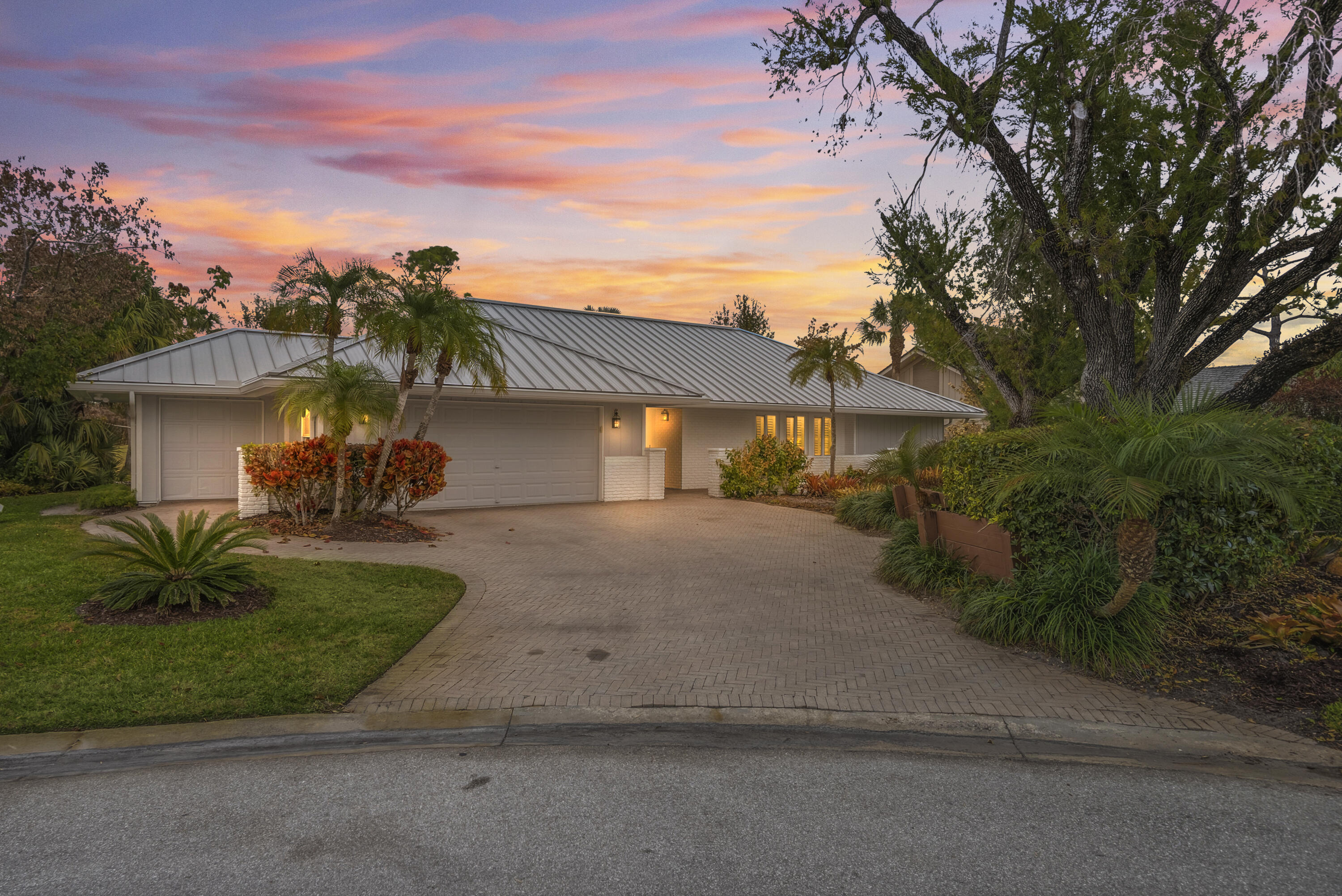 Located in the highly desirable Mariner Sands Country Club, this beautifully updated 3 bedroom, 3 bathroom single family home offers comfort, style, and stunning views of the 6th hole green on the Blue Course. A 2024 metal roof and all impact windows and sliders provide peace of mind, while thoughtful interior updates make this property truly move in ready. Inside, you'll find a fun Florida feel with colorful coastal wallpaper throughout, adding warmth and personality. The primary suite is a true retreat, featuring a spacious bedroom, walk in closet, and a renovated bathroom with dual sinks and a walk in shower. The layout is ideal for guests, as each bedroom offers its own full bathroom for privacy and convenience. The formal living room offers beautiful views of the outdoor space and features a charming wet bar, creating the perfect setting for entertaining. The spacious kitchen is equipped with stainless steel appliances, including a newer Frigidaire oven that reaches 700 degrees ideal for pizza lovers. Just off the kitchen, the den provides additional living space and showcases a cozy wood burning fireplace. Step outside to your private backyard oasis featuring a pool, covered patio space, and a large screened in lanai overlooking the golf course with beautiful green views. This home offers the perfect blend of indoor comfort and outdoor Florida living in one of Stuart's premier golf communities. Mariner Sands Country Club offers 2 championship golf courses, tennis, pickleball, croquet, a world class fitness center, resort style pool, restaurant, and a new $35 million clubhouse.