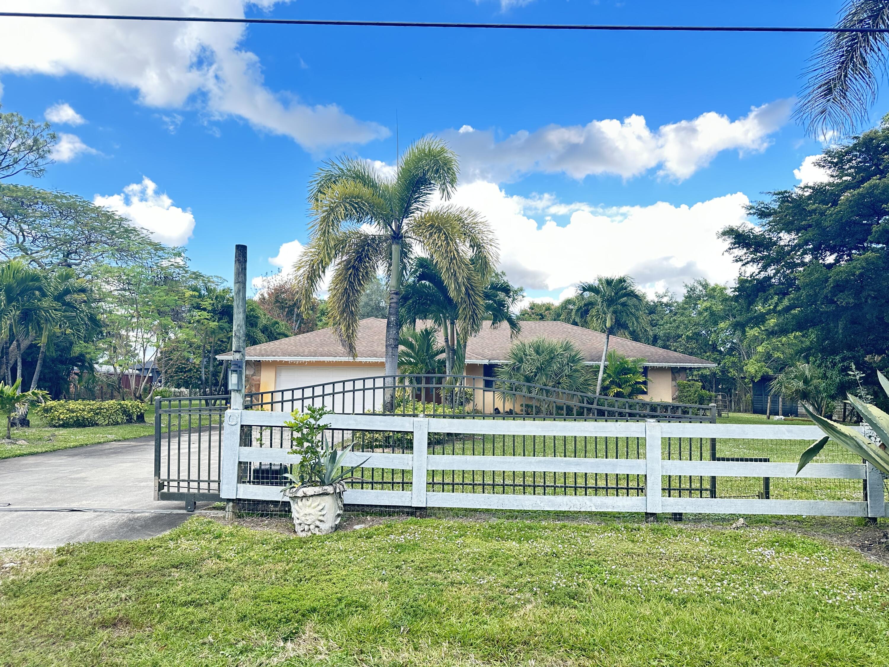 Home sweet home*horse country* bring the horses*the boat*the rv*the business trucks* over 1 acre to roam* offers luxury & comfort*features gorgeous tile floors thru out* updaated bathrooms*property has mature fruit trees* *yard is all fenced plus an electric gate. Paddock for horses, stalls, etc... All this and just minutes to the florida turnpike & wellington mall.. Interior features 5 bedrms* updated kitchen with granite countertops & stainless steel appliances* dont miss out on this beautiful home with country feel* centrally located*minutes from the wellington mall, the turnpike, dining, and top rated schools. High school is jon garcia h. S. Room sizes are approximate